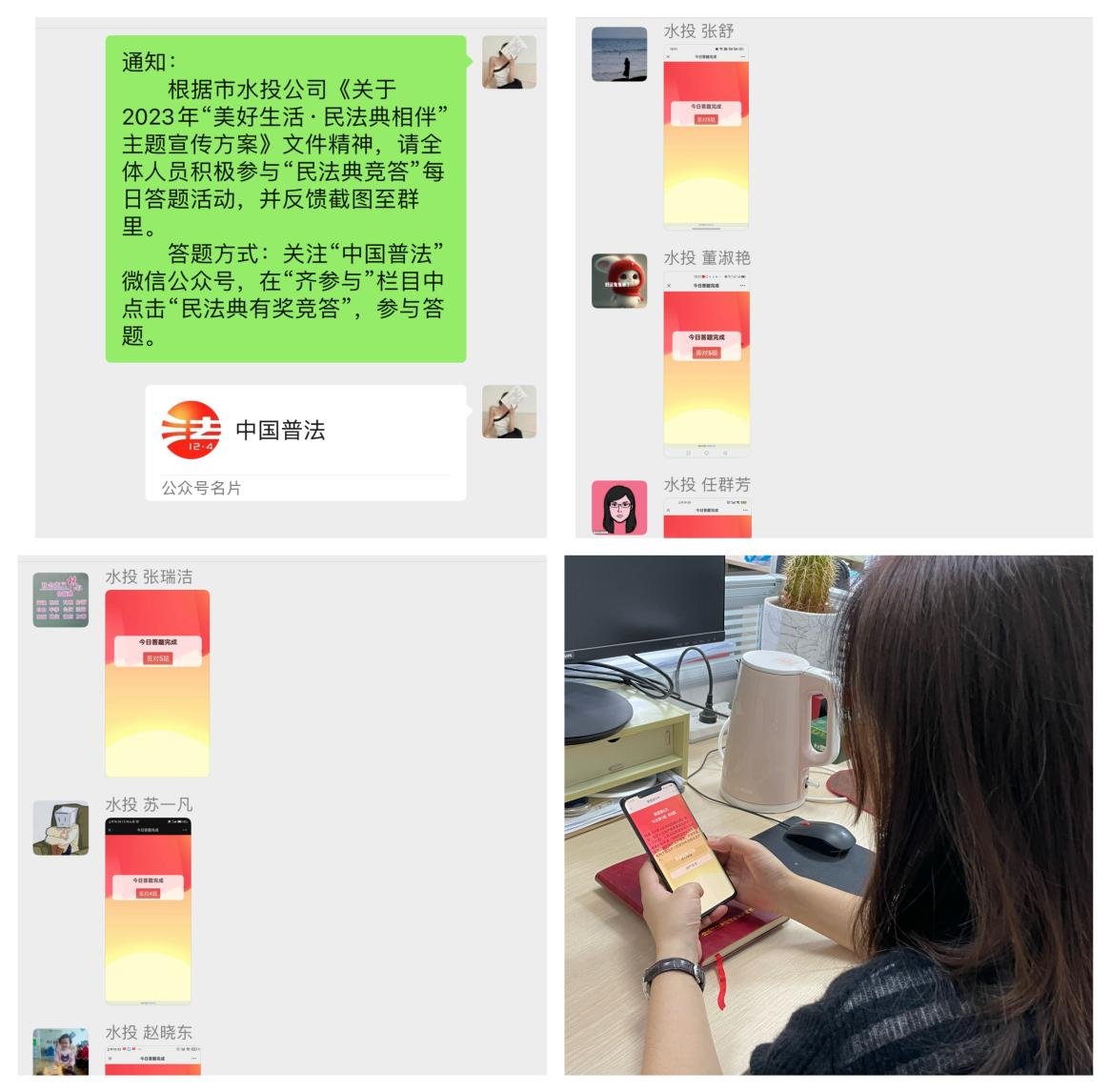 根據(jù)市水投公司《關(guān)于2023年“美好生活·民法典相伴”主題宣傳方案》文件精神,我公司高度重視,堅(jiān)持以習(xí)近平新時(shí)代中國特色社會主義思想為指導(dǎo),深入學(xué)習(xí)貫徹習(xí)近平法治思想,落實(shí)省市關(guān)于“美好生活·民法典相伴”主題宣傳活動,做好《民法典》學(xué)習(xí)宣傳工作,引導(dǎo) 廣大干部群眾養(yǎng)成自覺學(xué)法守法意識,培養(yǎng)解決問題靠法的意識和能力。