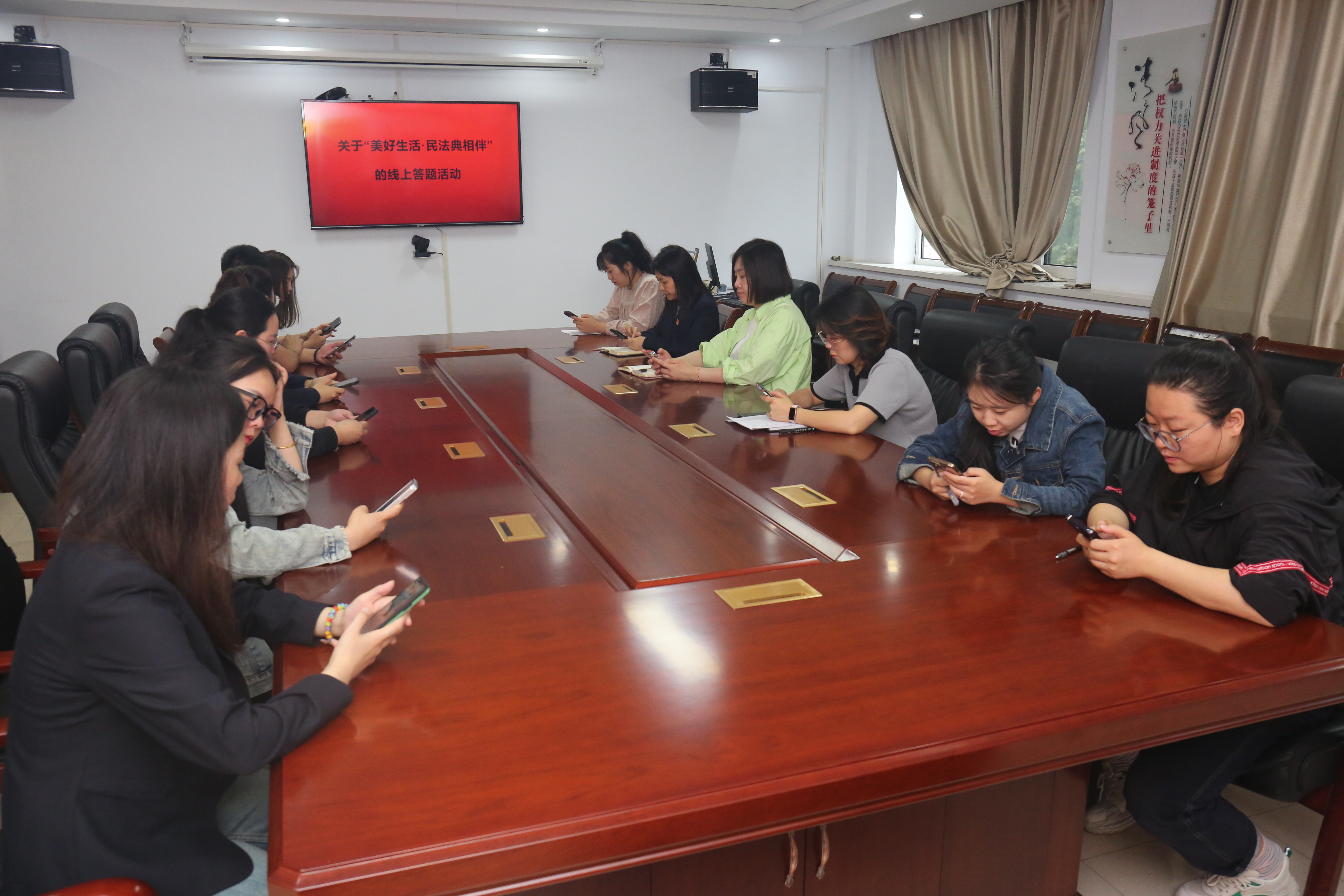 線上線下,形式豐富。宣傳學(xué)習(xí)活動形式多樣:LED大屏滾動播放宣傳;以“美好生活 民法典相伴”為主題,進(jìn)行線上答題,關(guān)注登錄“中國普法”微信公眾號,在“齊參與”欄目中進(jìn)行有獎競答,大家集體參與,踴躍答題,積極討論;同時(shí)組織機(jī)關(guān)青年學(xué)習(xí)習(xí)近平法治思想,重新溫習(xí)了習(xí)近平總書記關(guān)于民法典的重要論述。