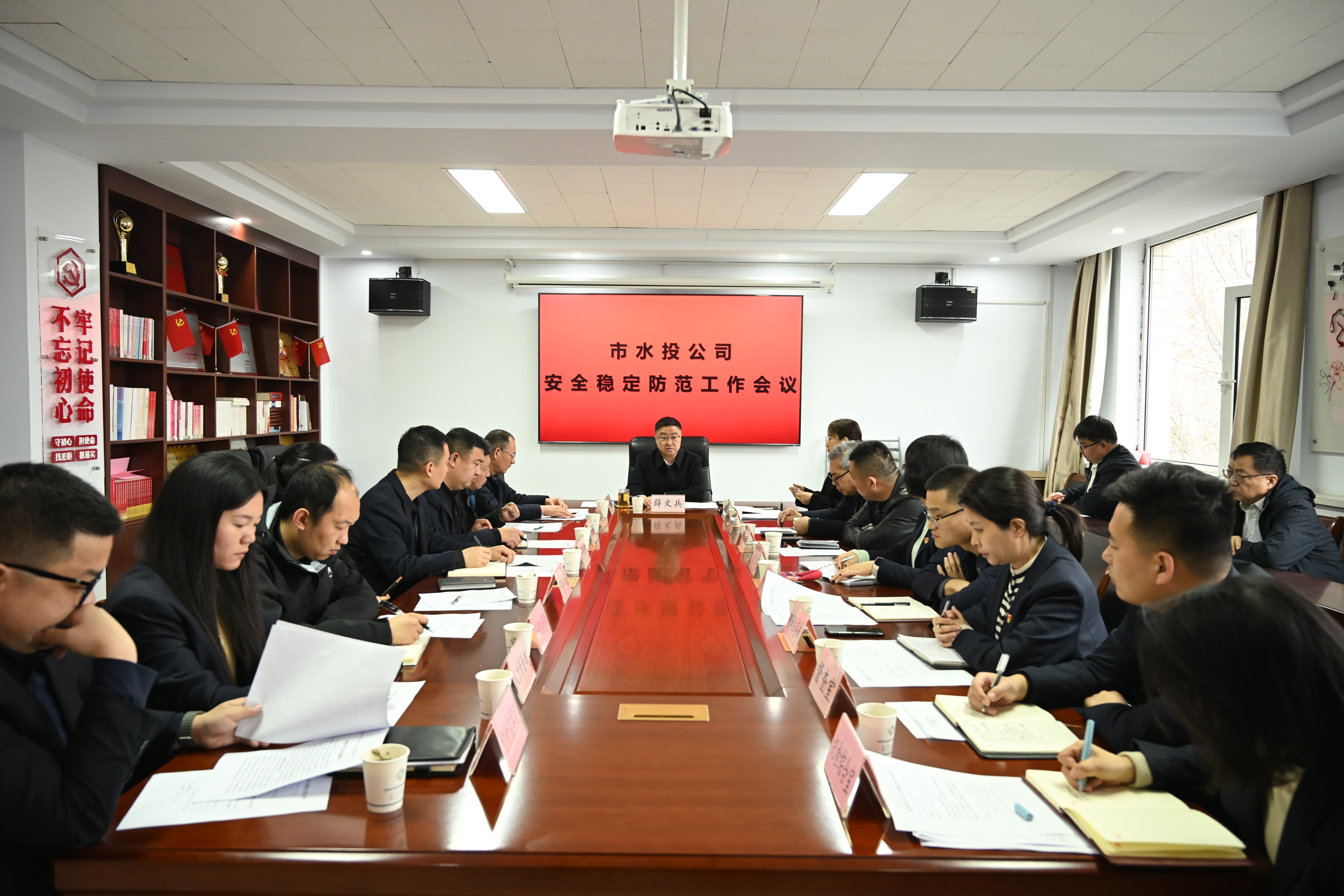 為了切實做好全國兩會期間安全穩(wěn)定工作,3月3日上午,公司黨委書記、董事長薛文兵組織召開市水投公司安全穩(wěn)定工作會議。公司黨委副書記、總經(jīng)理楊素平、中層干部、子公司班子成員共30余人參加會議。